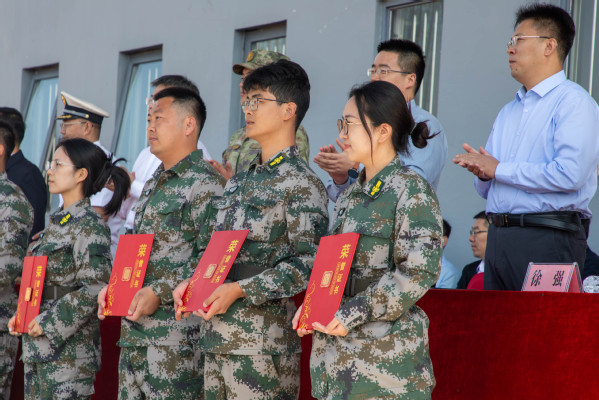 经过三周的不懈训练和全院师生的共同努力,石工学院军训营获得了多项荣誉。校领导们为获奖集体和个人代表颁发荣誉证书及奖牌,现场掌声雷动,对他们的努力与付出给予了高度肯定。