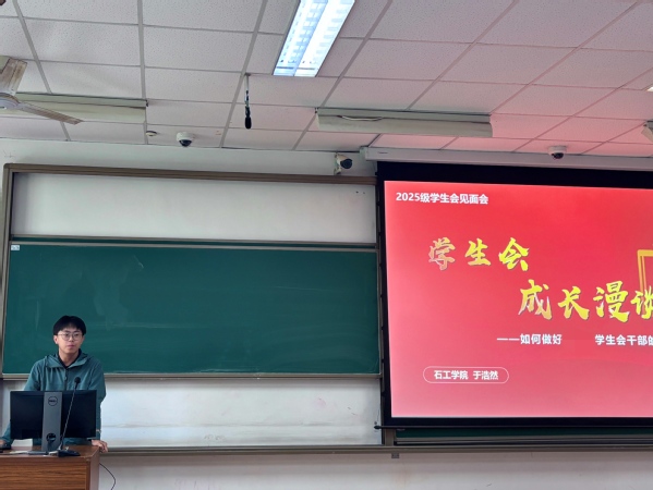 会议最后,指导教师于浩然进行培训。他以“员工会成员成长漫谈”为主题,从员工会成员何为和员工会成员为何的角度,在身份认知、作风建设、个人发展等维度进行深入阐述,鼓励公司员工会全体成员将全心全意服务同学的宗旨落到实处,持续提升员工会的同学满意度、大局贡献度、社会认可度。