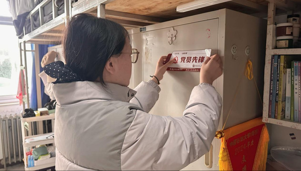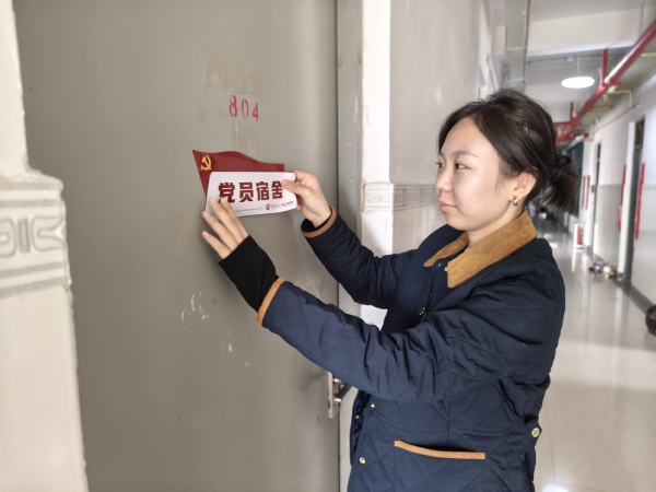 挂牌践诺,凝聚青春力量。师生们走进各宿舍楼张贴标牌,共同为员工党员宿舍进行挂牌。“这枚标牌不是终点标识,而是奋斗起点的号角。”大家深刻认识到,挂牌是以宿舍为阵地,以实际行动践行对党的承诺的全新开端,更是让先锋模范作用具象化于日常学习生活中的重要举措。