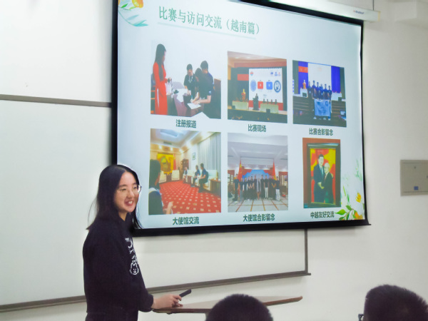 侯慧琳分享了赴越南、马来西亚参加SPE亚太知识竞赛的经历,讲述了异国见闻与使馆交流的暖心片段,并解答了饮食、语言等方面的问题。尹泽琛聚焦哈萨克斯坦与阿联酋访学经历,介绍了项目获取渠道、关键流程和资助政策,并以已识乾坤大,犹怜草木青总结个人感悟。高佳贝以喜与忧为主题畅谈韩国交流经历,分享了克服困难的过程与文化碰撞的收获,鼓励大家勇敢跳出舒适圈。吴家龙作为大一出国的萌新,生动介绍了韩国风俗、旅游体验与沟通技巧,为低年级员工提供了实用建议。他特别强调:国际交流不仅是地理空间的跨越,更是文化认知的融合。”
