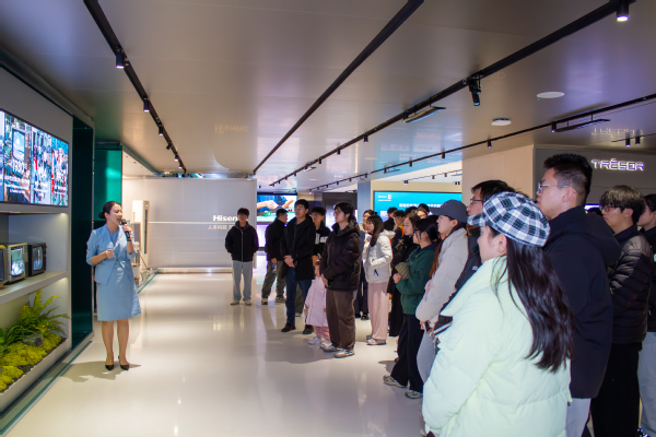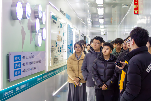活动中,海信工作人员向同学们系统介绍了企业在多个核心领域的创新成果。随后,同学们在讲解引导下参观了科技展览大厅,近距离体验了海信自主研发的服务机器人、8K超高清电视、激光电视等高科技产品,直观感受前沿科技对生产与生活方式的深刻影响,并与技术人员就产品原理与应用场景进行了交流。最后,全体人员赴海信信息产业园,实地观摩核心制造流程,工作人员重点介绍了芯片研发与生产工艺,使同学们对智能制造与高端装备有了更为具体的认识。
