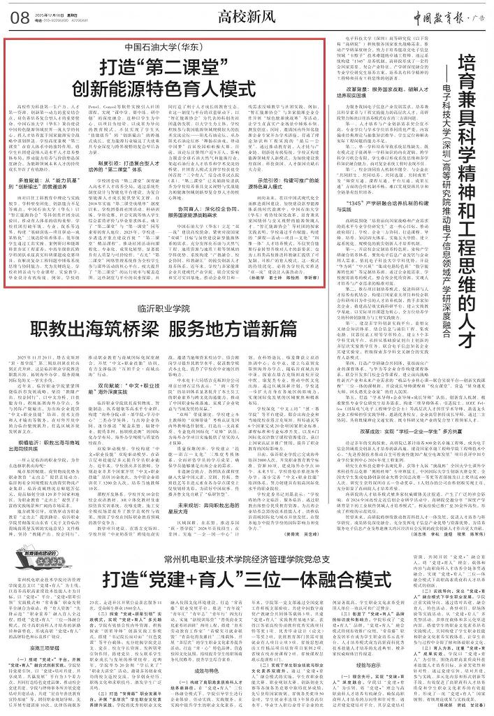 【本站讯】12月18日,《中国教育报》高校新风版以“中国石油大学(华东)打造“第二课堂”创新能源特色育人模式”为题,报道集团能源领域人才培养中的创新模式与教育实践。