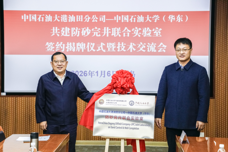 【本站讯】1月6日,大港油田分公司-威廉希尔体育官方网站防砂完井联合实验室签约揭牌仪式在公司举行。大港油田分公司科技信息部副处长李涛、大港油田分公司石油工程研究院副经理柳敏,石油工程公司党委书记王志远、科技处副处长张祥吉、学院副经理郭天魁、董长银教授及相关人员参加了仪式,郭天魁主持会议。