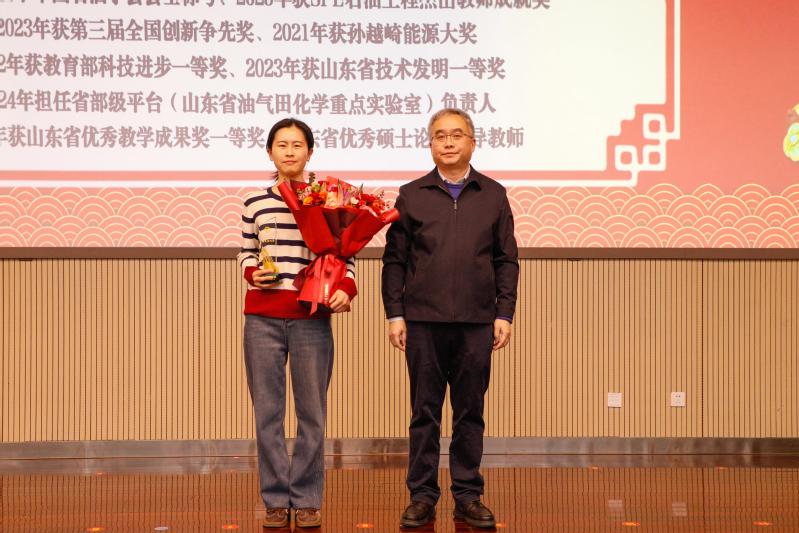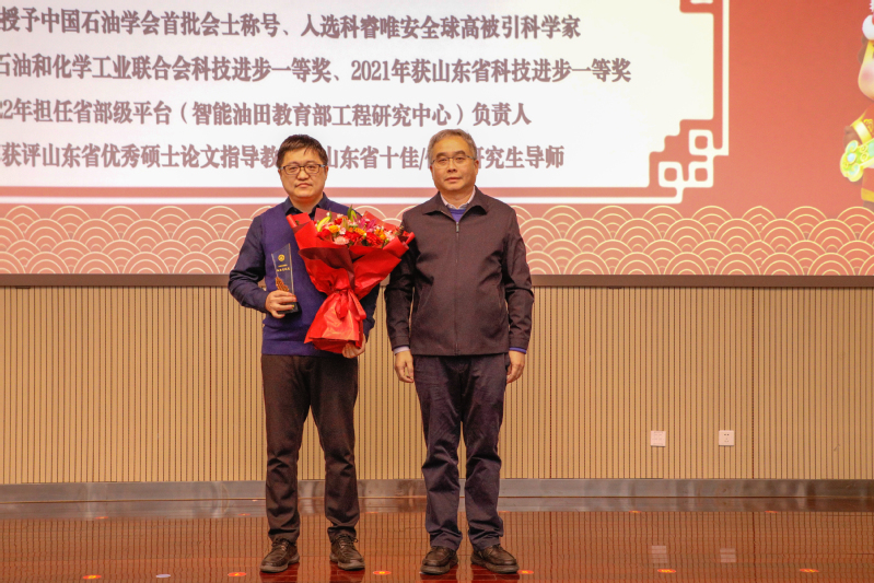 副经理张黎明宣读表彰文件,授予孙金声院士特殊贡献奖,授予管志川教授、姚军教授、孙宝江教授、戴彩丽教授、赵放辉部长、张凯教授杰出贡献奖,授予王业飞等44人突出贡献奖,授予丁名臣等88人贡献奖,授予油气藏工程研究所等7个集体“冲天杯”集体奖,特邀嘉宾依次为获奖者颁奖。