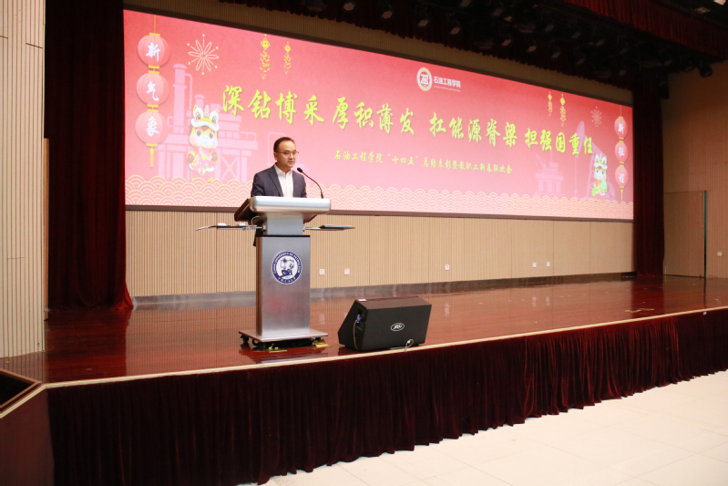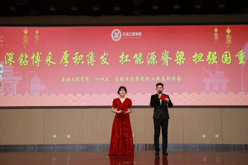 【本站讯】凝心聚力绘蓝图,奋楫扬帆启新程。1月8日,石油工程学院“十四五”总结表彰暨教职工新春联欢会隆重举行,会议主题为“深钻博采,厚积薄发,扛能源脊梁,担强国重任”。公司党委常委、宣传部部长赵放辉,特邀嘉宾、公司领导班子成员、全体教职工和员工代表等180余人欢聚一堂,共同回顾五年奋斗历程,迎接新春展望未来。公司党委副书记李兆爱主持总结表彰大会。