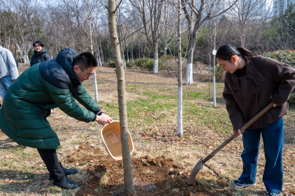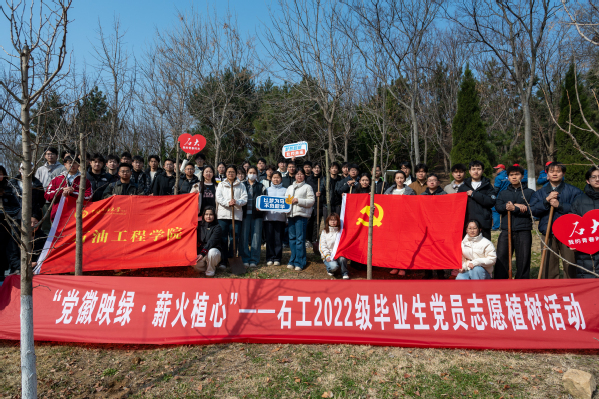 “党徽映绿·薪火植心”——石工2022级党支部联合学院机关教工党支部开展志愿植树活动